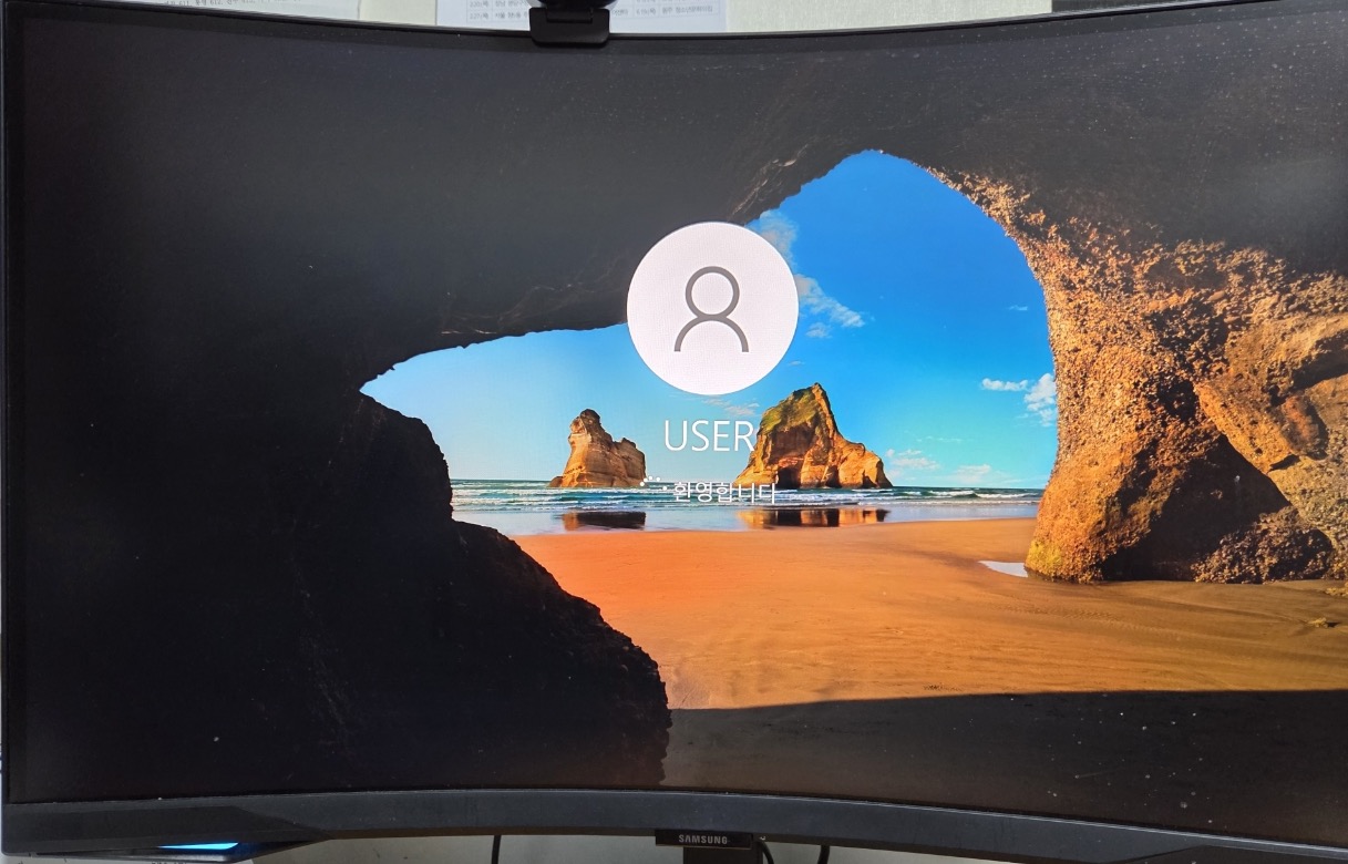 먼저 위의 '환영합니다' 화면에서 멈춤이 반복된다면, 본체의 전원버튼을 눌러서 컴퓨터를 껐다켰다 반복한다.